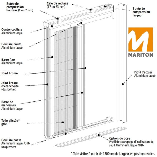 Avec son encombrement réduit de 35 mm, des profils en aluminium laqué, une barre de manoeuvre pour l'ouverture ou la fermeture et des joints brosse, elle s'adapte à toutes les situations et assure une parfaite étanchéité.