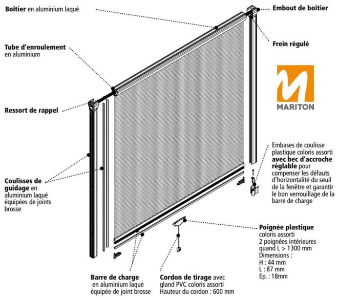 Les coulisses de guidage en aluminium laqué équipées de joints brosse et le frein régulé permettent une remontée douce et silencieuse de la moustiquaire.