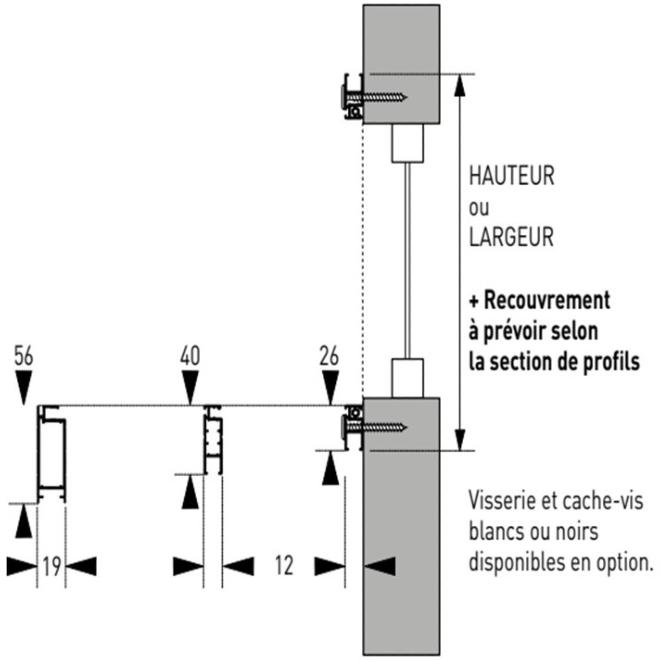 Elle peut également être installée avec une pose en façade avec un profil de renfort centré horizontalement ou verticalement selon les dimensions.