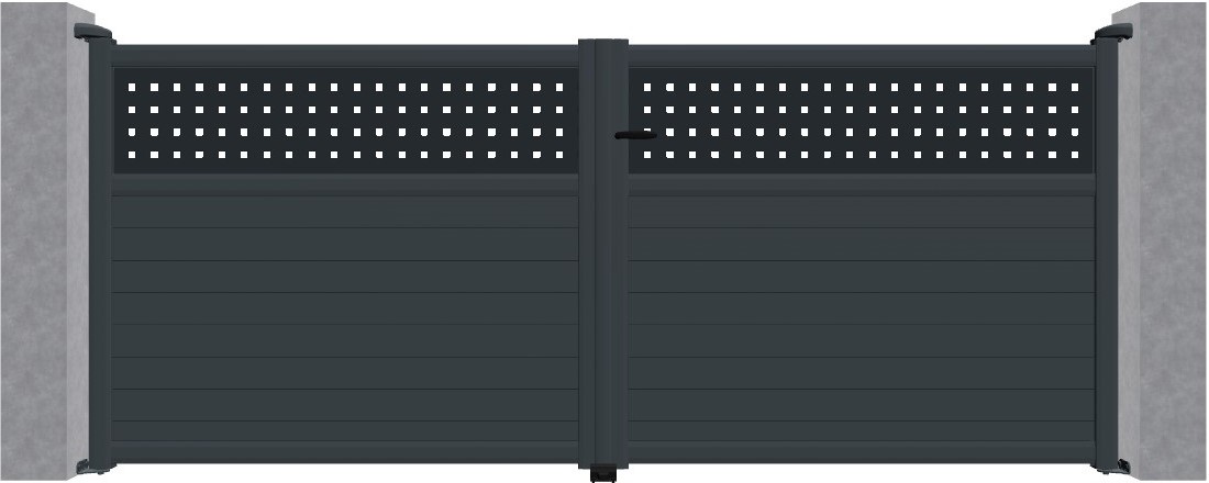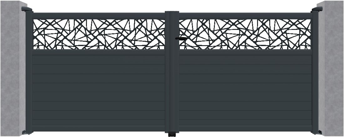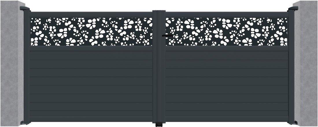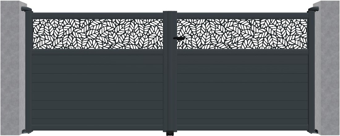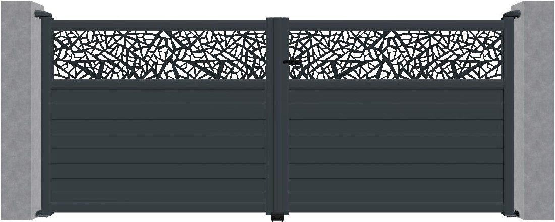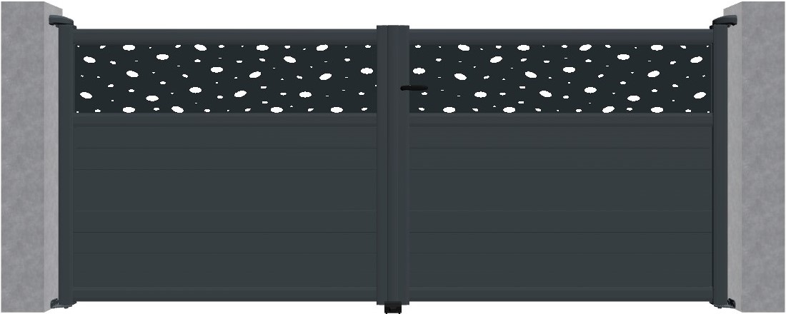 Le portail ONYX Déco est réalisé avec des profils en aluminium et un remplissage en parties hautes avec une tôle aluminium 2 mm assortie de décors pour 8 modèles de décors au choix : Tempo, Roseaux, Bambous, Primtemps, Éclats, Automne, Galets, Squares.