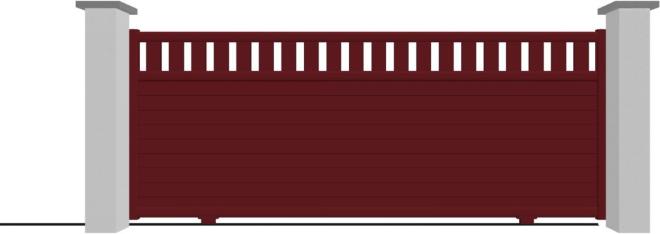 Constitué de barreaudage en partie haute avec des lames de 100 x 20 mm disposées verticalement et espacées avec un ajourage de ± 70 mm.