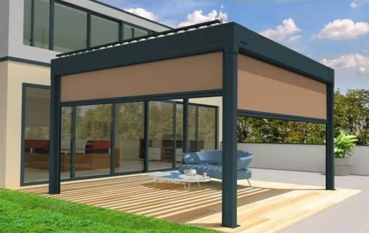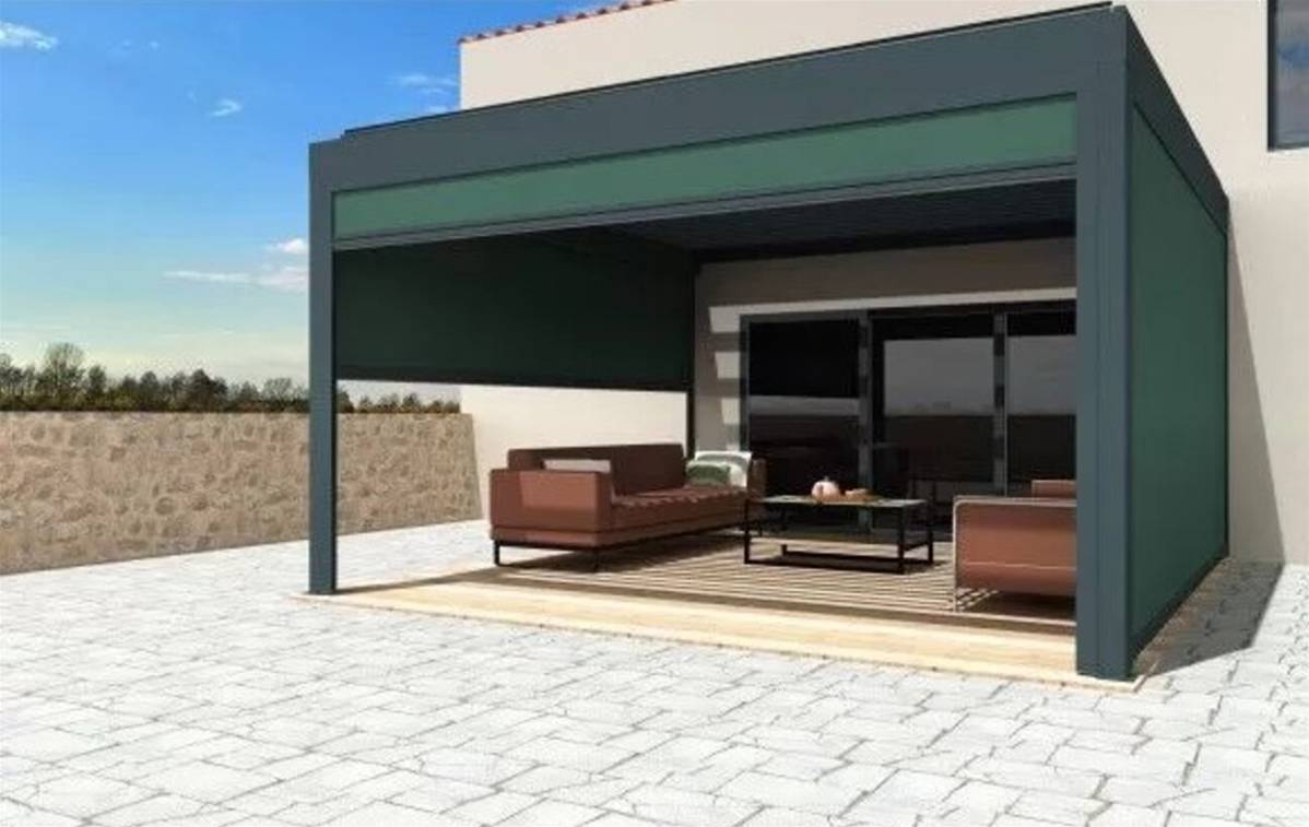 Le store coffre 105 à coulisses est fabriqué sur-mesure afin de s'adapter parfaitement à l'encadrement de votre pergola ou de vos ouvertures.
